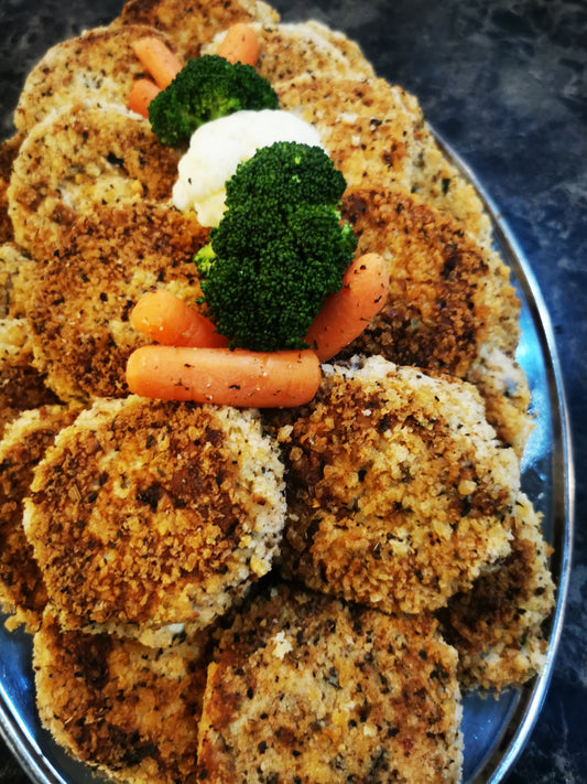 Salmon & Cod Fish Cakes ~ Includes Starch & Veggies (Frozen Meal)