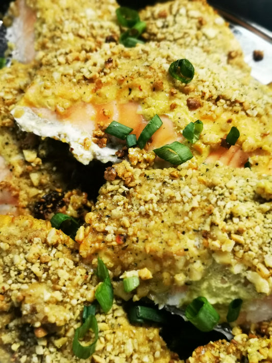 Cashew Crusted Salmon w/ Preselected Starch & Two Veggies (Frozen Meal)