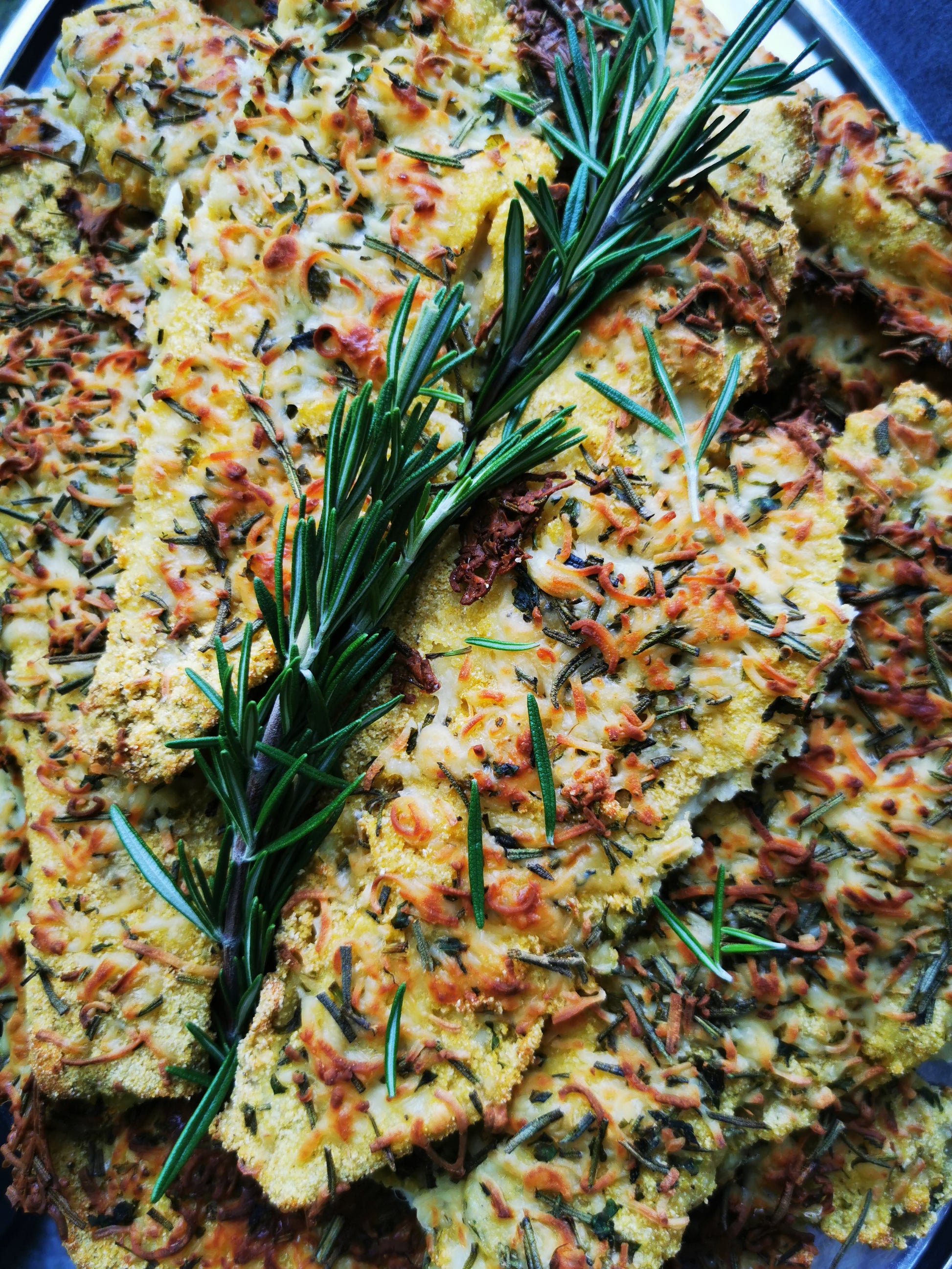 Fresh Rosemary, Parmesan cheese & seasoned Cornmeal Crust